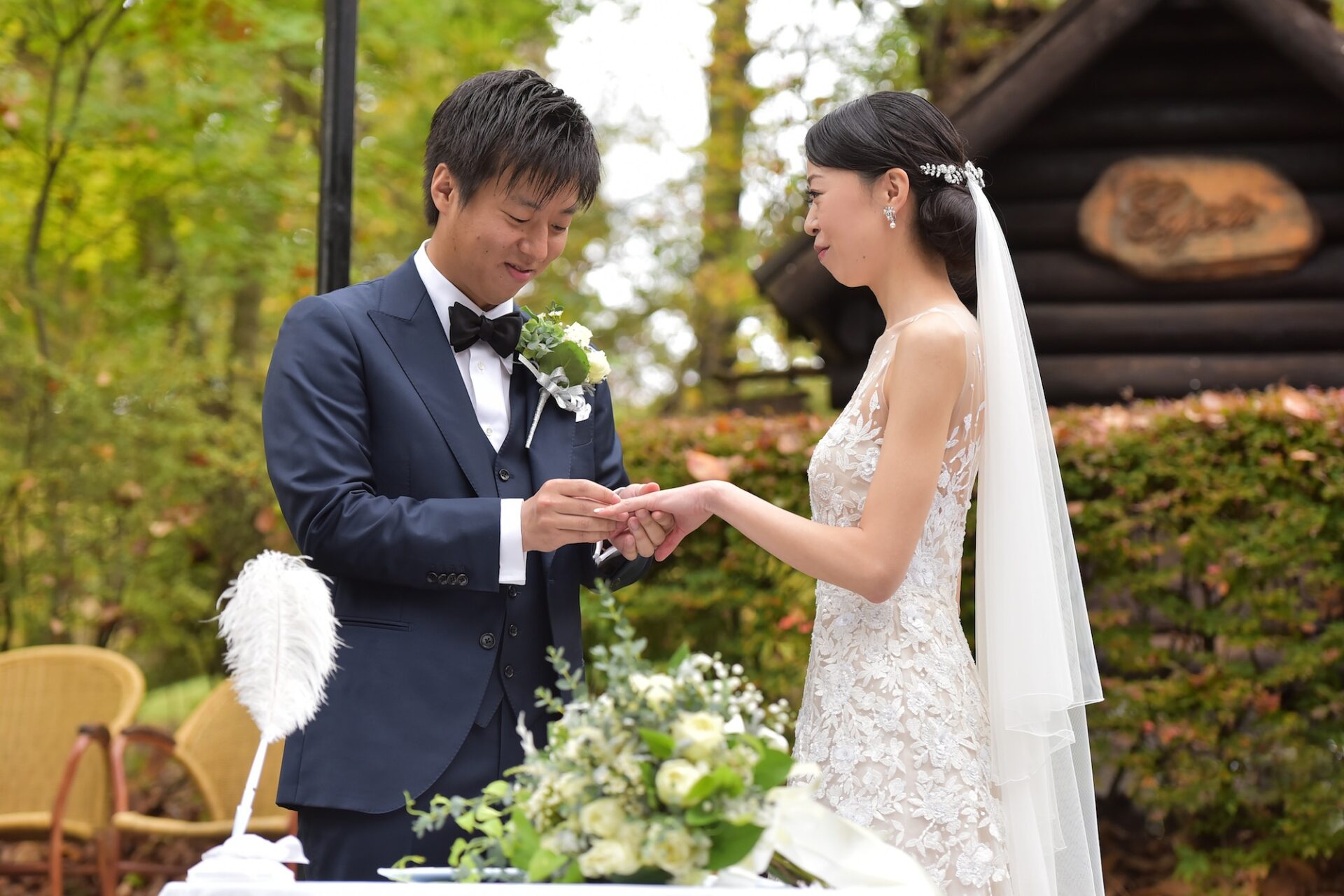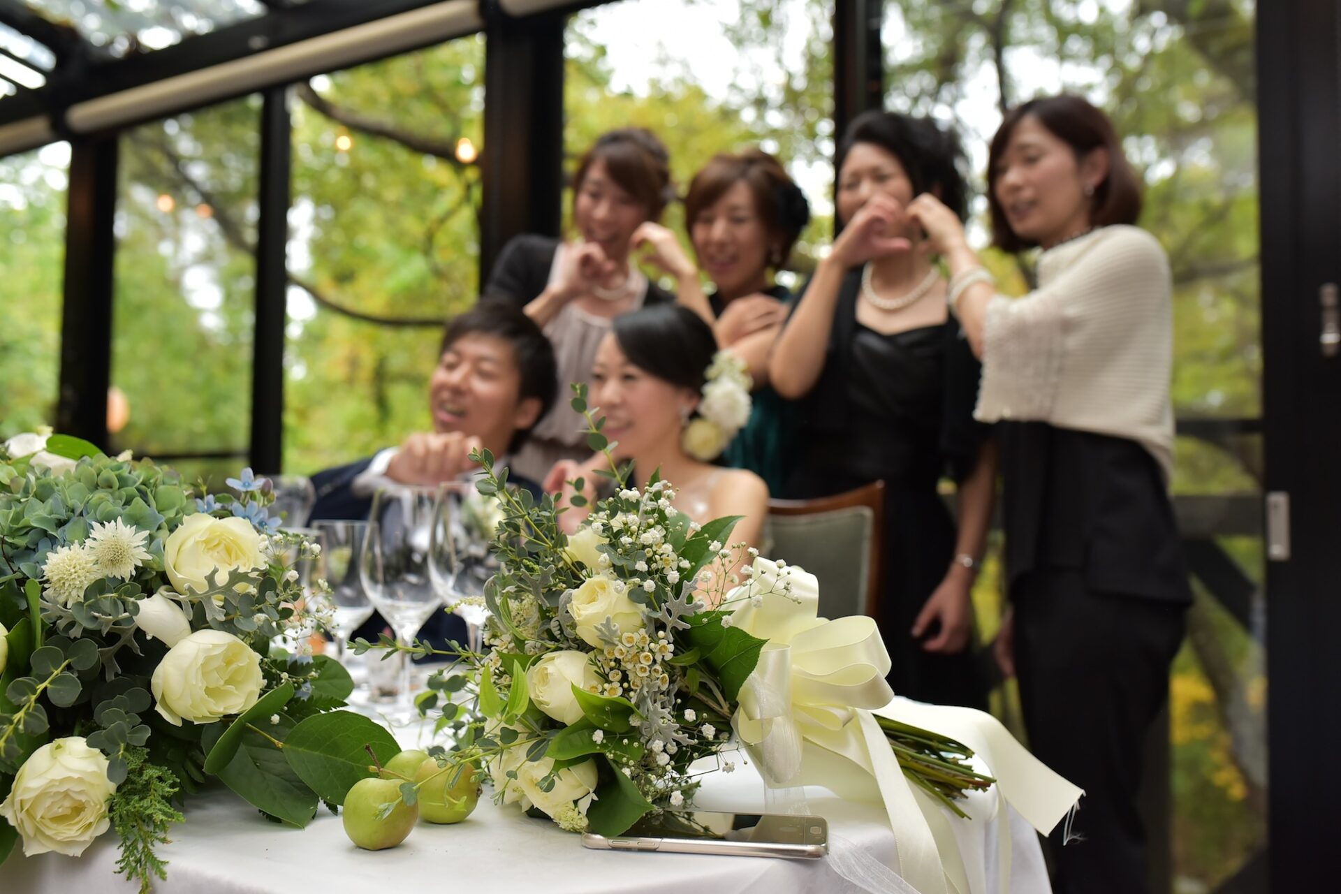 お打ち合わせの時から、とても気さくで楽しいお2人。当日は、しっとりとした秋の景色と相まって、ご新婦様の美しさがより引き立つカットが撮れました。たくさんの仲間と美味しいワインにお料理。最高〜に贅沢なウエディングパーティー!